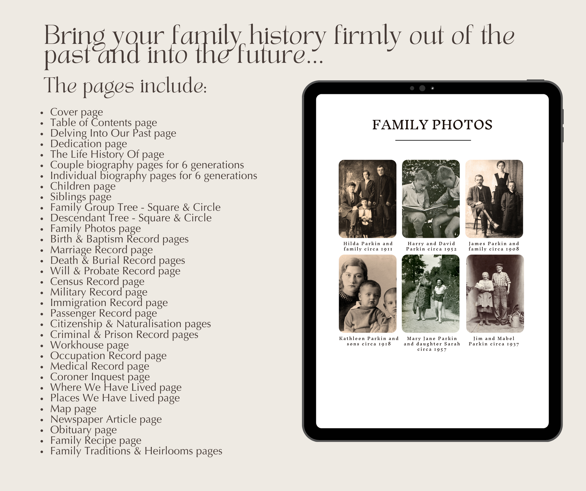 Get your family history organised by creating a book for future generations. Our classic family history book template has been created for those who want a simple & clean aesthetic for a 'classic' look.